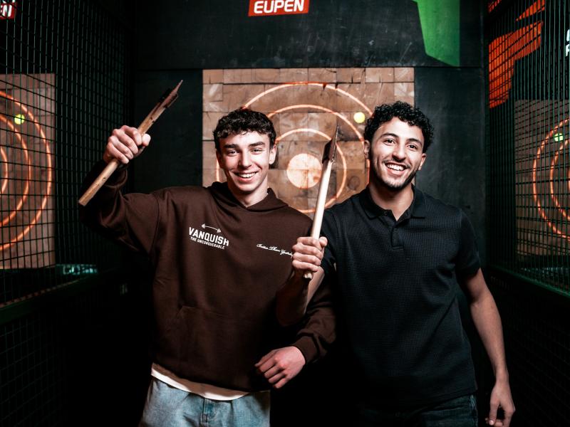 Get ready for an adrenaline rush at Experience Factory Eupen! Besides one of the world's largest indoor tracks with an exceptional 1.1 km long course, now discover axe throwing! One of the most fun activities, axe throwing is the perfect way to blow off steam.