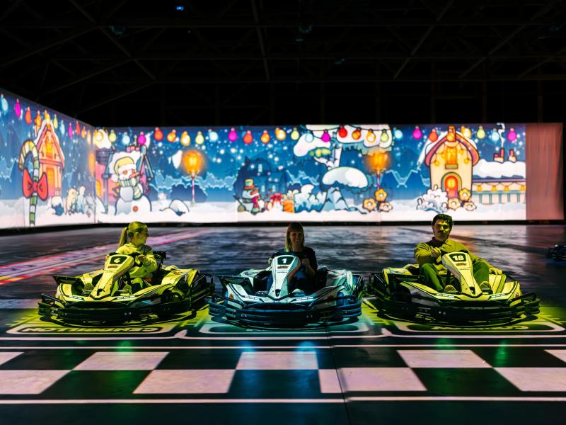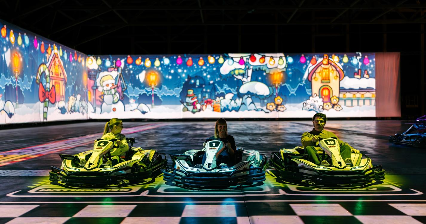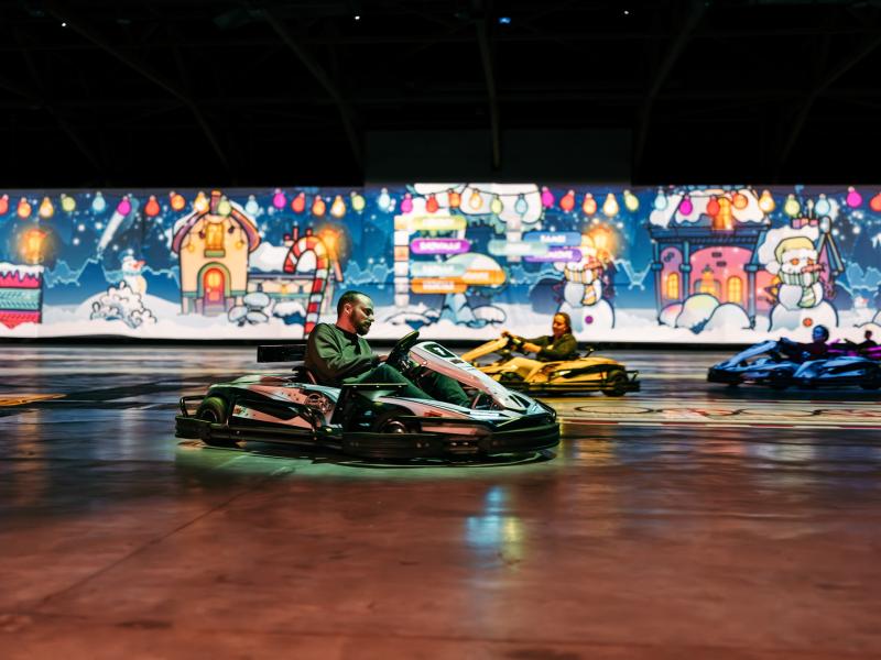 It's go-karting because you drive an actual electric go-kart with the real thrill of speed. As a little extra, the go-karts are smart, so a helmet isn’t necessary. In this way, you have the thrill of speed and the freedom of your hair blowing in the wind!