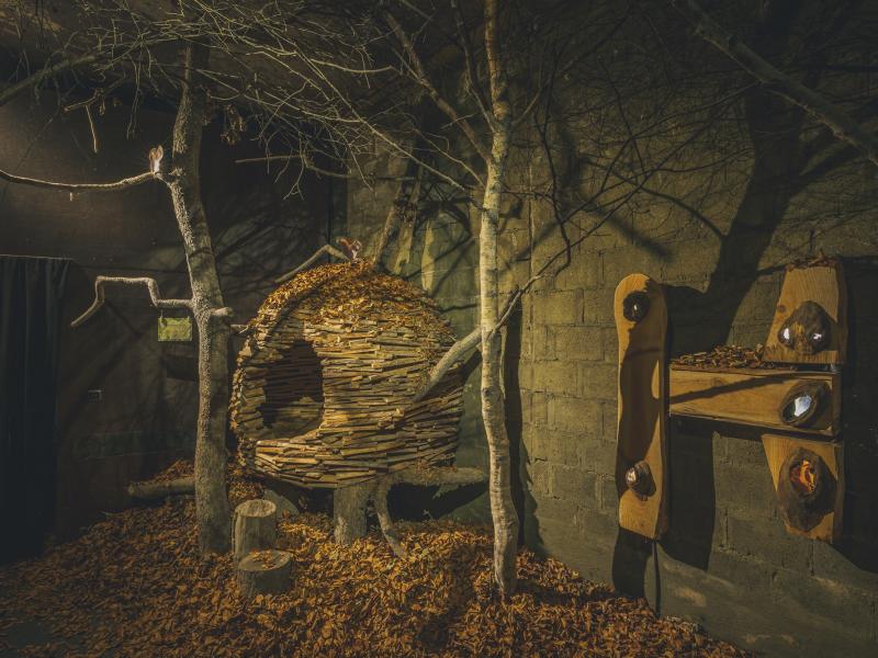 As the culmination of your adventure, you walk through a fascinating tunnel that lets you experience the mysterious atmosphere of the High Fens with all your senses. You hear the melodious song of morning birds, followed by the nocturnal call of owls. You visit a fox den and a squirrel's nest. To round off your immersive journey of discovery, you walk barefoot over a natural carpet of pine cones, leaves, and bark, where all your senses are stimulated by the rich, unique ecosystem.