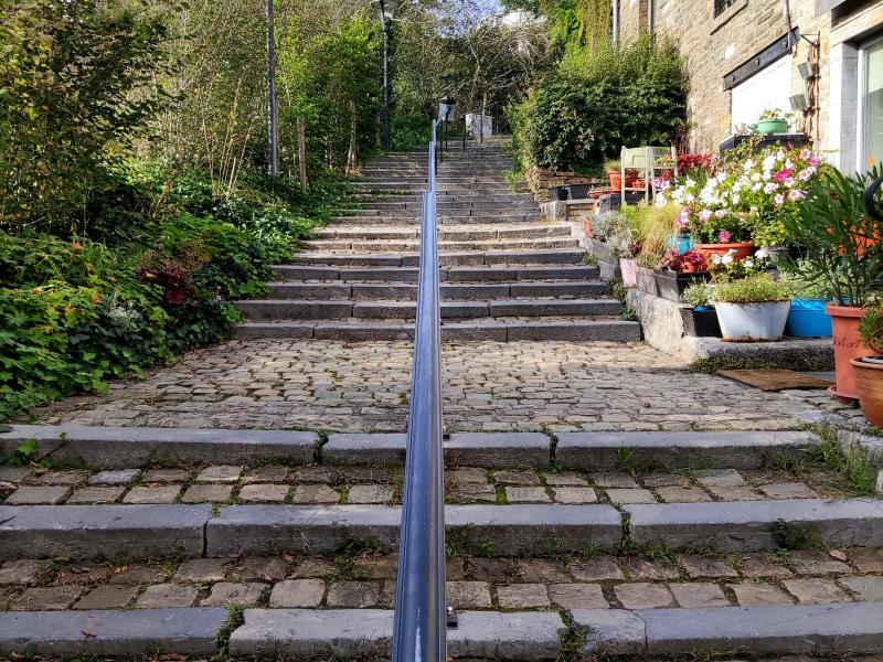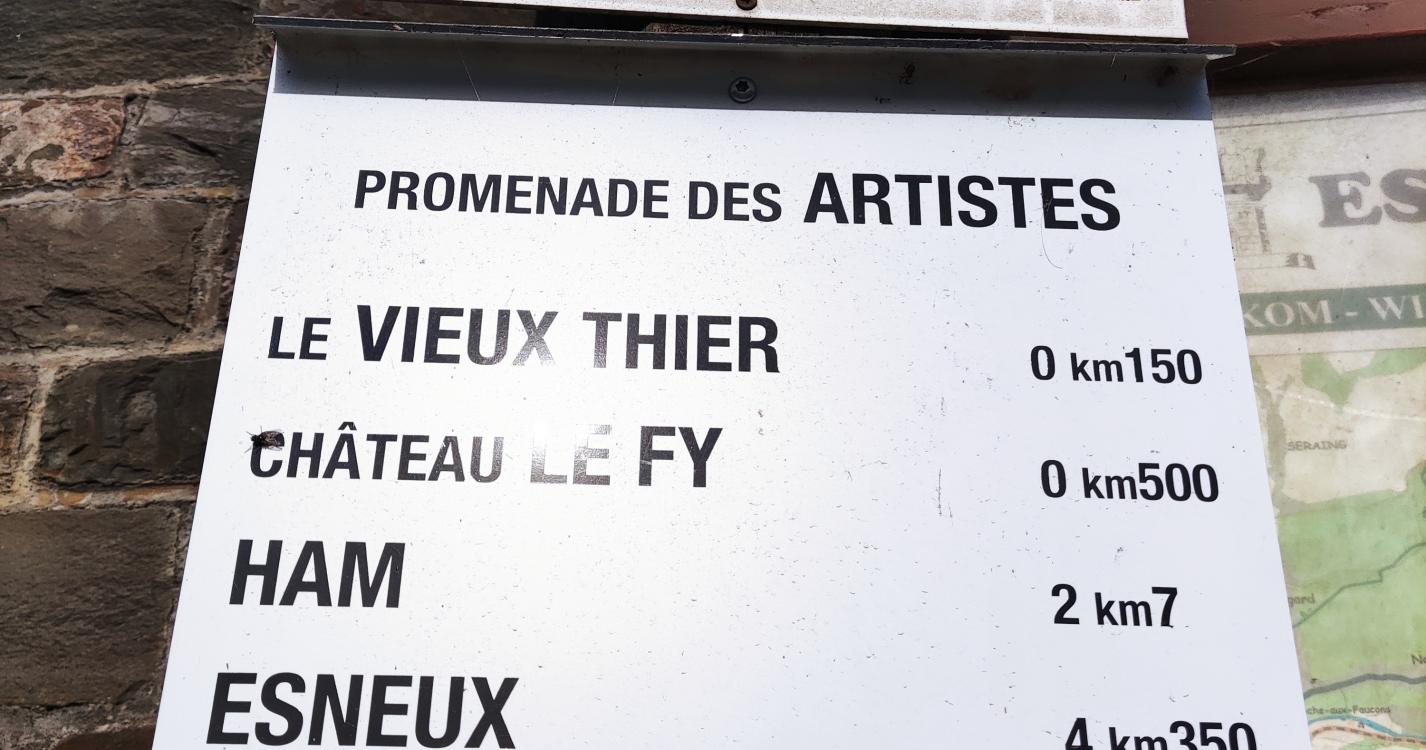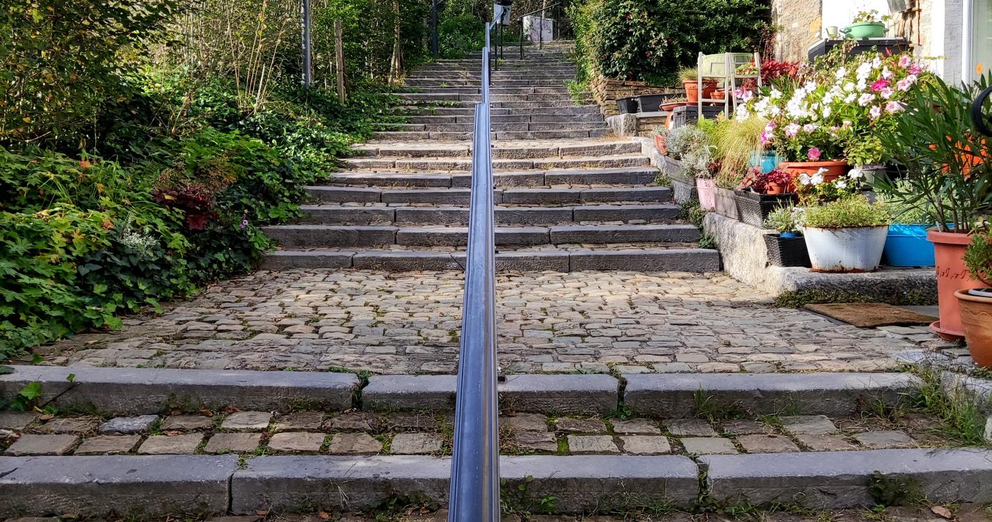 La promenade commence par l’ascension de l’escalier du vieux-thier (+/- 170 marches) et la traversée d’Esneux par de petites ruelles pour ensuite rejoindre la forêt qui vous emmène vers le site classé du château de Beaumont.