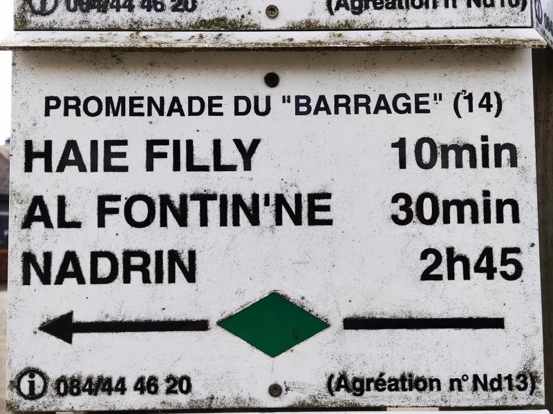 La promenade débute dans le village de Nadrin, vous longerez la grand-route pour rejoindre un chemin qui vous emmène vers Filly et sa fontaine.