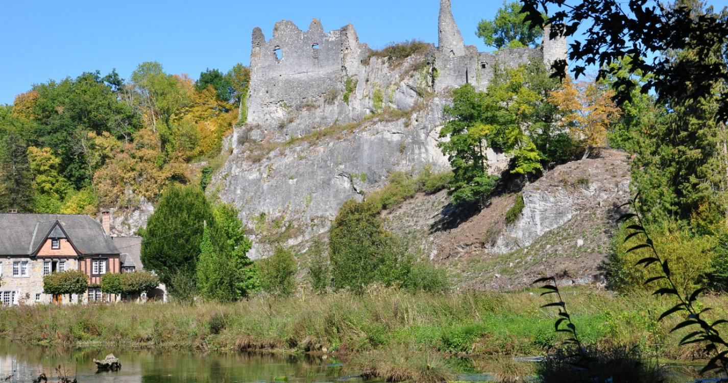 Very beautiful circuit between fields, forests and small rivers and very few roads. Possibility to visit the ruins of the castle of Montaigle, an exceptional site in a romantic setting.