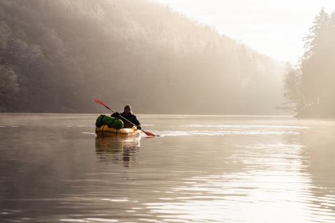 A natural awakening in a packraft on the Nisramont Lake