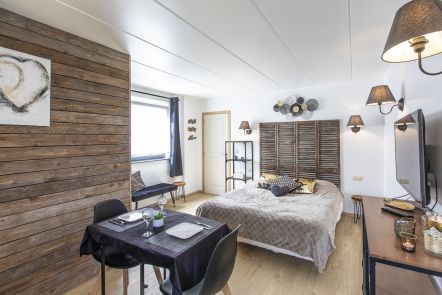 Een klein maar zeer gezellig en knus verblijf. Voor 2 personen precies goed alleen hadden wij een vrij grote hond erbij dus was het af en toe een beetje passen en meten maar uiteindelijk best te doen. Open haard was heerlijk alleen moet je er welvoor zorgen dat hij op tijd uit is want je slaapt boven ( het is open) dus alle warmte gaat naar boven waardoor het dan erg warm kan worden om te slapen maar wel heel leuk zo slapen in de nok.