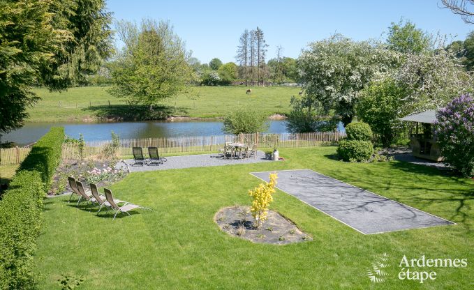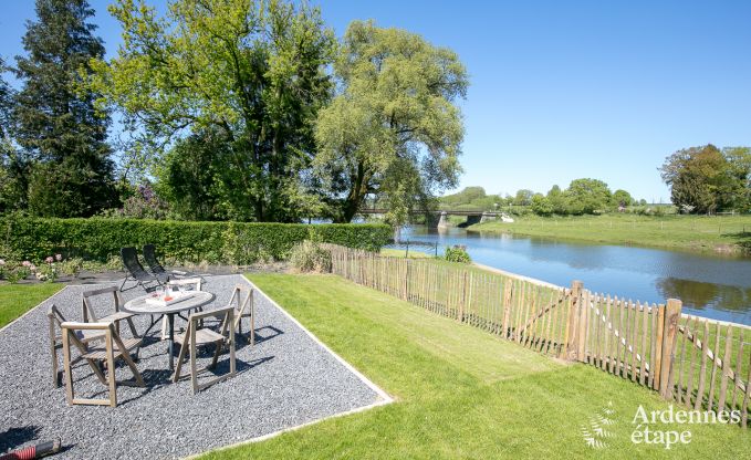 Holiday by the river in a charming holiday home in the centre of the picturesque village of Chassepierre. With three bedrooms, wood fire, games room, patio and garden.
