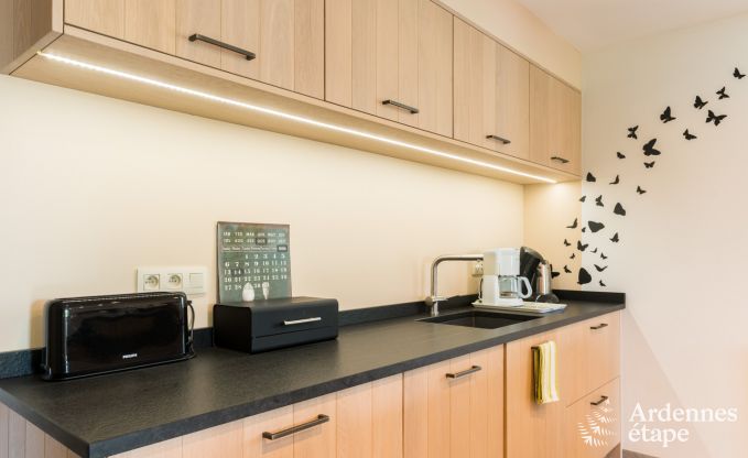 Zeer proper en goed afgewerkt vakantiehuis! keuken zeer goed ingericht. Tuin mooi onderhouden. Enkel de gehorigheid in de living en de bovenliggende kamer is een klein ongemak.