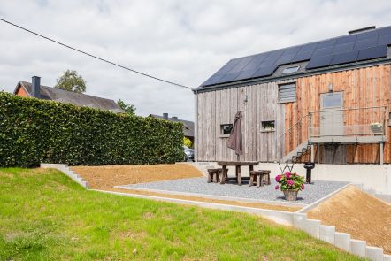 The house is in a fantastic location from which you can do hiking and cycling routes directly, as well as easily access groceries and other necessities in Couvin by car or bike (mind the sometimes very steep hills). We spent four nights in the 6-person house while other guests stayed in the 2-person house. Each house has its own part of the garden and is very private. The hosts were very welcoming and understanding of a delay due to train problems. Being right next to the forest was amazing.