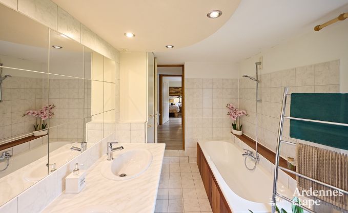 This magnificent 3,5-star holiday home can accommodate up to nine people for a great stay in the province of Namur. Decorated and arranged with great care, the living area consisting of a beautiful cosy living room and a dining room that exudes an authentic and welcoming charm. The pleasant fully equipped kitchen is perfect for preparing delicious meals to share with your friends or family. Upstairs, you will find five comfortable bedrooms and two large bright bathrooms.