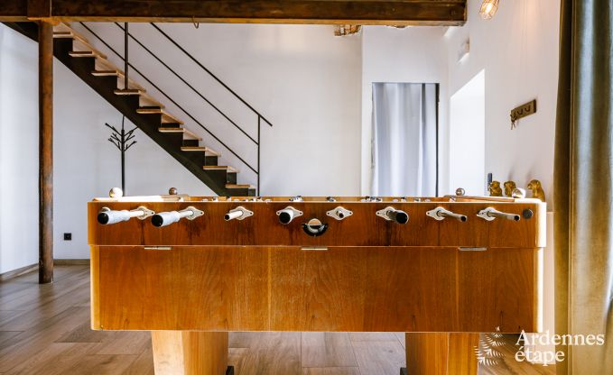 Welcome to this beautiful holiday home in Doische, perfect for a group of 8 people. The house is equipped with a foosball table for playful moments, a cozy wood stove for colder evenings, and a wooden barbecue for summer grilling nights. The house is also very bike-friendly with a bike repair kit and a secure bike storage. For the little ones, a baby cot is available upon request.