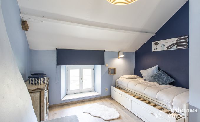 Upon arrival at this holiday home in the province of Namur, you are immediately immersed in the rural atmosphere and charm of this century-old farm. Inside, you will find a well-kept interior with fresh colours and authentic elements. Going with the kids? Let them stay together in the room for 2/4 people: they may not get much sleep, but they will certainly take home memories for life! Get some fresh air together and then make time to enjoy a delicious pancake or aperitif by the fireplace. Outside, you can relax on the lovely terrace with its splendid view, while your four-legged friend romps around in the large private garden.