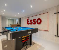 The villa is also equipped with modern conveniences such as a charging station for electric vehicles and a wood pellet stove for a cozy atmosphere. For entertainment, there is a game room with billiards and a relaxation area. Outside, you can enjoy a game of petanque or take in the peaceful surroundings in the private garden.