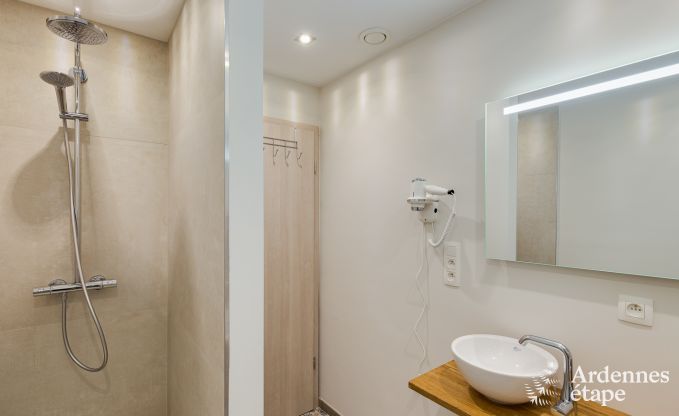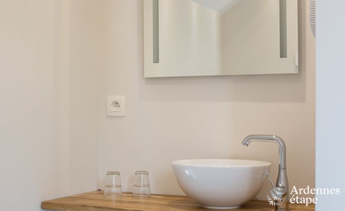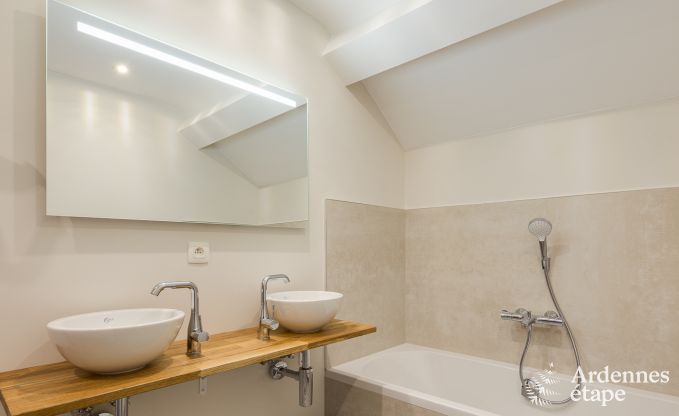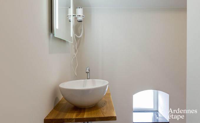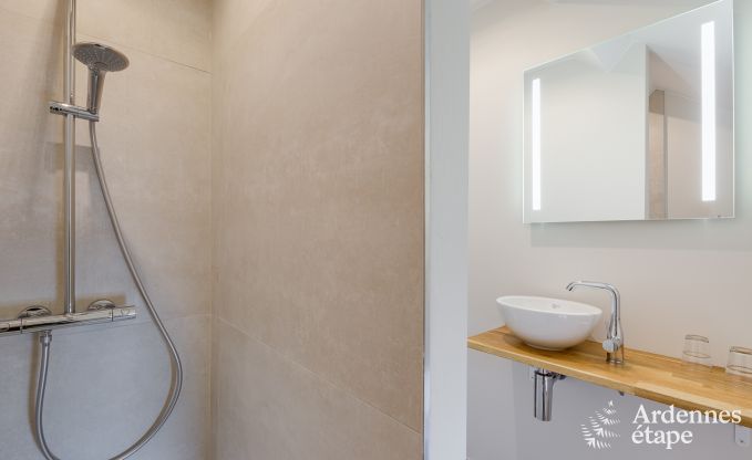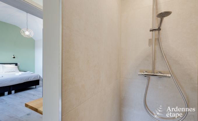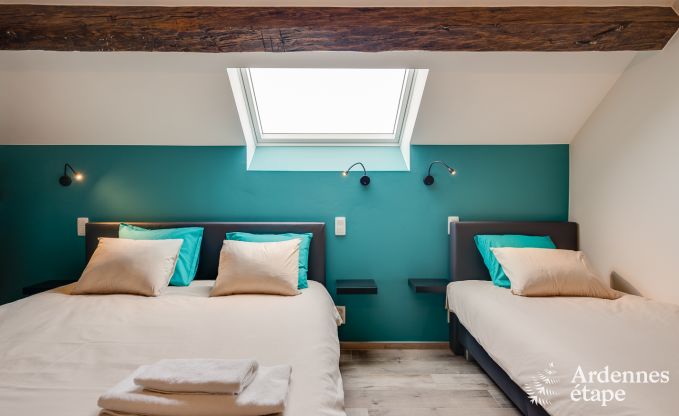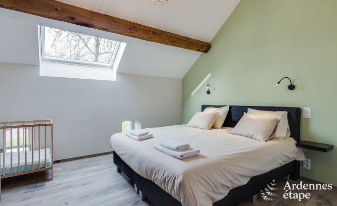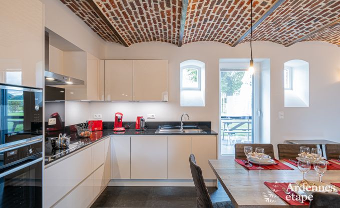 With its unique architecture and perfect location, this beautiful holiday home pays homage to its Ardennes heritage. Set at the heart of a working farm, you will experience the rhythm of nature and enjoy a healthy and eco-friendly lifestyle, far from your daily concerns. In this 3-star cottage, which can comfortably accommodate up to 10 people, you can stay with family or friends. Located in Fourons, in the province of Limburg, this old barn was built in 1890 and renovated in 2018. It features all the amenities to enjoy a unique stay in the Belgian Ardennes. On the ground floor, the cosy lounge invites you to enjoy pleasant moments around the wood-burning stove, in a warm atmosphere. The fully equipped kitchen opens onto a large dining room, which has a beautiful old ceiling with exposed brick. On the first floor, there are three bedrooms with en-suite bathrooms. The largest of these rooms is equipped with a double bed and two single beds so it can accommodate four guests. On the second floor, you will find a fourth bedroom with its own bathroom, which is the ideal master suite for a perfect holiday. This splendid Ardennes house also features a large 600 m2 fenced garden where younger guests can frolic at their leisure. And a spacious terrace is perfect for enjoying meals and aperitifs. Finally, a private parking area for four vehicles is also available.