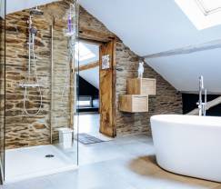 On the ground level, the first two bedrooms share the same bathroom. Upstairs, the two large double bedrooms each have their own private bathroom.