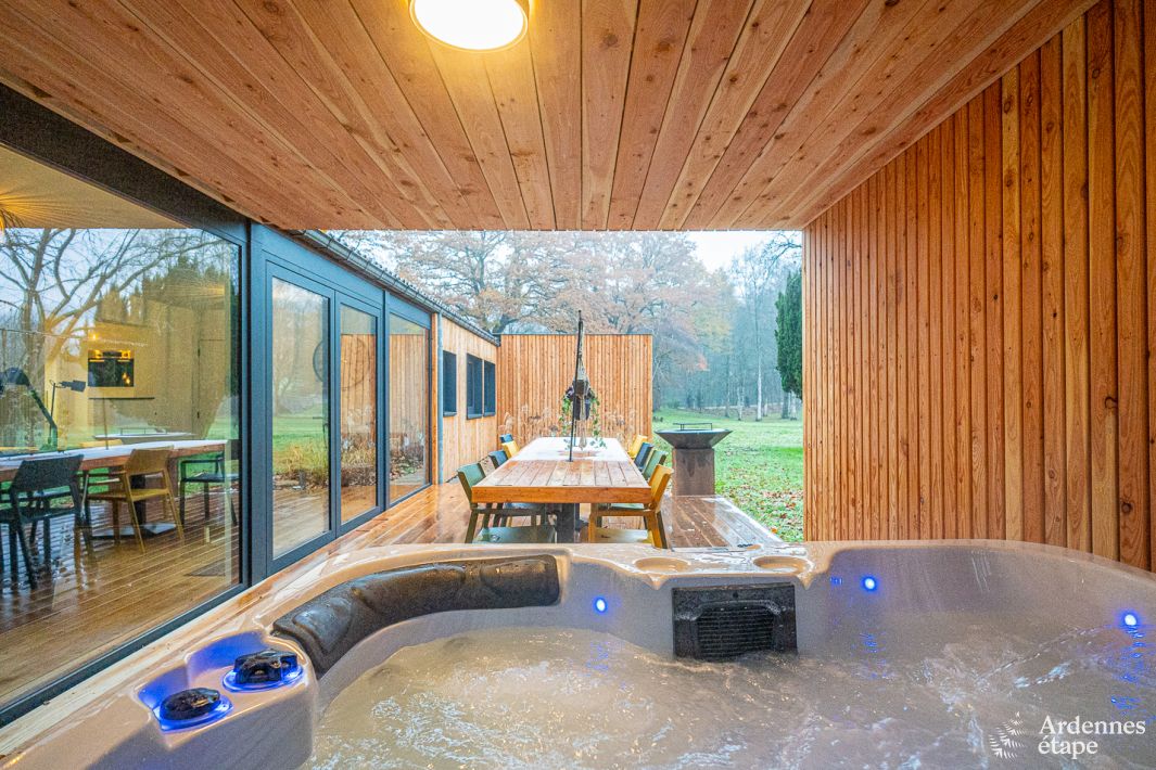 Looking for nature, comfort and discovery? Walk through the large, shared garden of this beautiful holiday home and you will feel right at home. Snuggle up on the cosy sofa for an evening of board games, share a delicious charcuterie board (from the ‘Li Binamé Pourcê’ Farm in Trois-Ponts, of course) or let yourself be tempted by a game of billiards! The exterior is not to be forgotten: there is even a hot tub on the lovely wooden decking area!