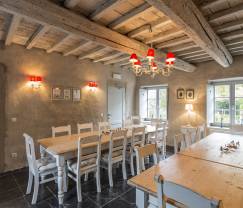 This 4-star farmhouse located near Maredsous, in the province of Namur, has everything to please nature lovers. Built in 1650 and then renovated in 2005, this non-terraced farmhouse has all the necessary comfort for a holiday in the Ardennes. Its generous dimensions and layout system offer you the possibility to organize a group stay composed of several families. The ground floor includes: a room to play foosball, a meeting room, three lounges, two equipped kitchens, two separate toilets and a laundry room. 12 bedrooms and 12 private bathrooms with WC are spread over the two floors. This judicious organization ensures privacy and independence for holidaymakers. An annex building is converted into a relaxation area where you will find an infrared cabin for 2 to 3 people, as well as a shower and a toilet. The farmhouse has a private garden partially fenced. The three terraces of different sizes and the courtyard are not indifferent. Young and old will fully enjoy an outdoor playground. Slide, swing, ping-pong table and boules pitch are at your disposal.