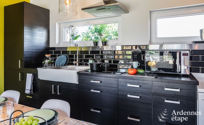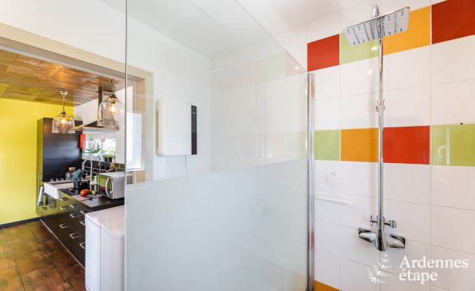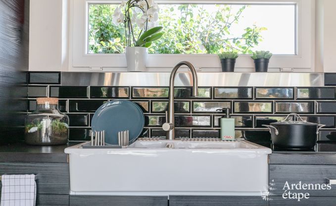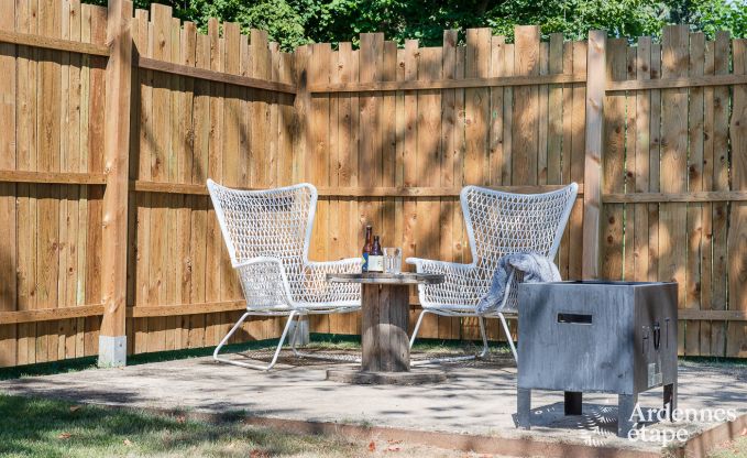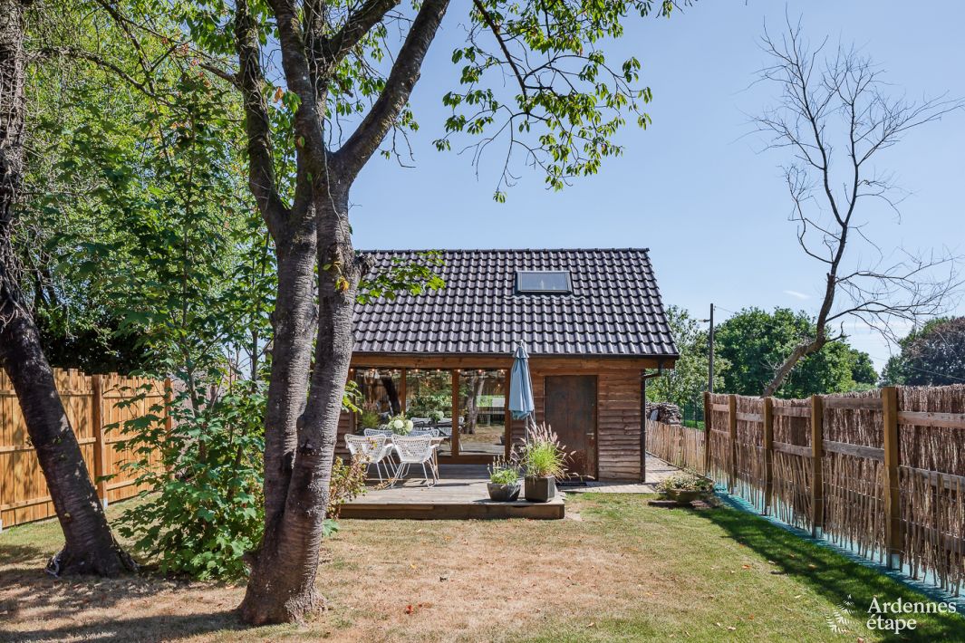This very comfortable little holiday home was designed for you to spend a peaceful holiday in the Ardennes. The interior and exterior exude a great ambience that is both dynamic and mellow. You’ll love the living space, which is open to the exterior and heated by a stove, just as much as the bedroom nestled in the roof, like a cocoon. Since the household linen is included in the total price of your rental, you can move in (and leave again) with complete peace of mind.