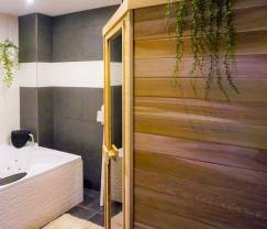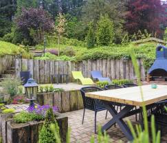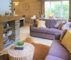 On the edge of the forest, this high-quality vacation home from the seventies house has many surprises for you in store. Once in the sitting room, you will immediately be charmed by the brightness of the place and by the large windows looking over the neighbouring forest. What else? You may easily spend a family stay here since the cottage may host up to 5 persons thanks to 3 bedrooms and 1 bathroom. The Scandinavian decoration is to be found all around the house: the warm tones, the sweet patterns and the airy layout make for an immediate feeling of well-being. If you wish to enjoy this feeling further, the (private) Jacuzzi and sauna await you! As far as the exterior is concerned, you will benefit from a terrace with barbecue. The garden is spread over several levels, which allows much light to penetrate the house and makes for a true nature feeling.
