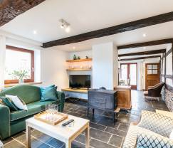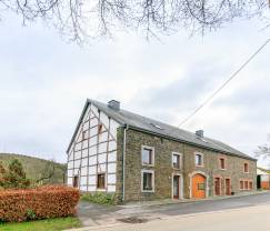 Former farm with rustic cachet for holidays in the countryside. With three bedrooms, a private terrace and a garden + a shared garden and lake by the house. This semi-detached former farm has authentic charm. Its beautiful half-timbering , beams , local stone and old parquet floors give it a traditional Ardennes ambience, full of character . The comfortable furniture, in keeping with the...
