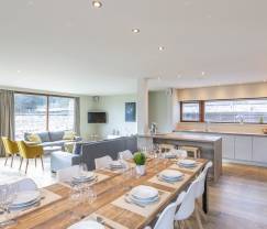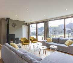 The property has 6 comfortable bedrooms and 5 modern bathrooms. For the little ones, there is a baby cot and a high chair available. The living room is cosily furnished with a wood pellet stove, perfect for cosy evenings by the fire. The kitchen is fully equipped, so you can prepare delicious meals.