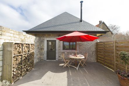 The outdoor space of the house is just as impressive as the interior. The private terrace is the perfect place to relax and enjoy the peaceful surroundings. In addition, there is a wood barbecue available, ideal for cozy summer evenings.